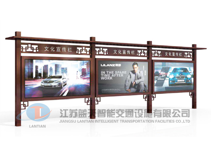是一家生產(chǎn)宣傳欄,候車亭,公交站臺(tái),閱報(bào)欄,指路牌,廣告垃圾箱,滾動(dòng)換畫燈箱等系列產(chǎn)品廠家!產(chǎn)品多達(dá)上百種,亦可根據(jù)客戶的需求加工制作各種型號(hào)、規(guī)格的產(chǎn)品。目前已經(jīng)成功的向市場(chǎng)推出裝備有太陽能的各類產(chǎn)品,緊跟國(guó)家倡導(dǎo)“節(jié)能低碳”的環(huán)保政策。